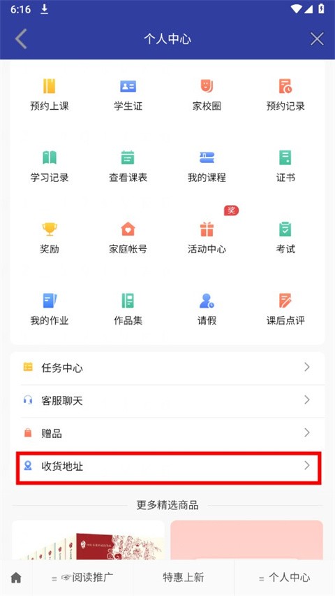 3、进入个人中心页面,下滑找到收货地址并点击进入;