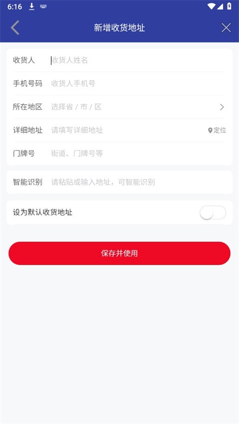 5、输入收货人、手机号码、所在地区等详细信息,点击保存并使用即可添加成功。