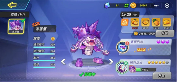 寄居蟹的被动攻击【绝对正义】在3星时解锁,可以通过普攻三次敌人使其中毒,在中毒状态敌人会减速并且丢失体力。
